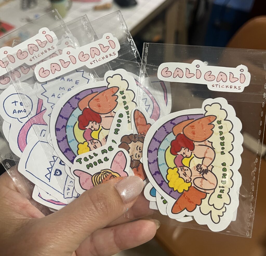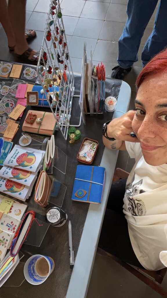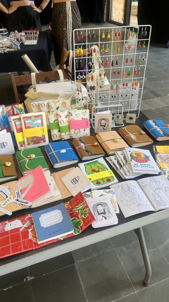 Llegué sobre las 10 de la mañana para preparar y disponer el material que había preparado en las semanas previas. También tenía cosas en stock que quizá no eran de mi preferencia pero una amiga -que sabe vender muy bien- me dijo que las lleve igual. Y le hice caso a la profesional. Para mi sorpresa, lo primero que eligieron comprar fueron el par de pendientes menos favorito. Primer aprendizaje: hay público para todo, y -gracias a dios- no todos tenemos los mismos gustos.