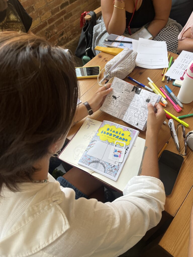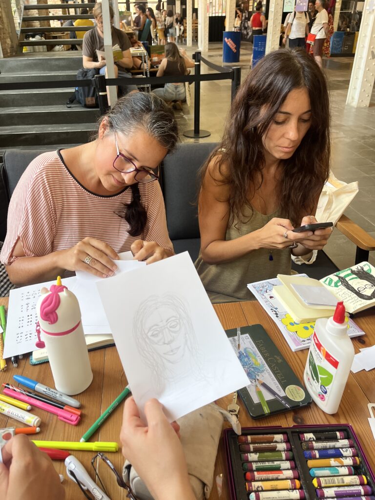 Sobre las 17 impartí el taller de Diario Ilustrado en el hall del recinto. Quedé super contenta con la convocatoria. Lamentablemente quedó gente afuera porque se agotaron las plazas, pero quedamos en contacto con varias de las asistentes y no pasará mucho hasta que vuelva a dictarlo, seguramente en el bellísimo espacio de mi colega y amiga Vicky Cuello, Violeta Art Garden.
