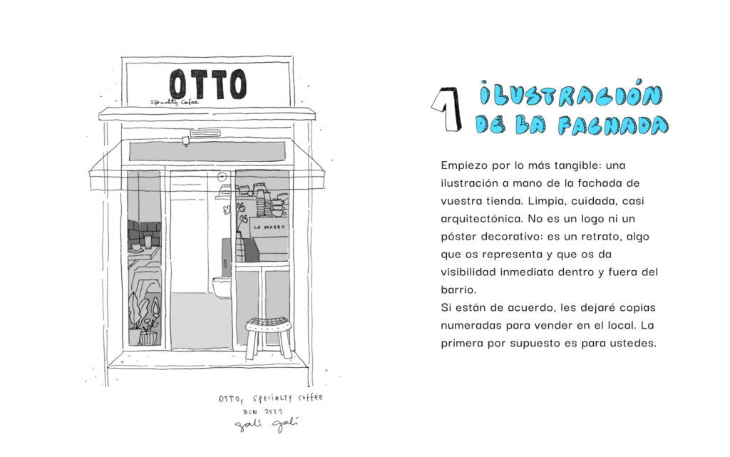 Hace poco más de un mes una persona me contactó por Instagram luego de ver la ilustración de la fachada que hice a OTTO, la cafetería de especialidad de Nati y Raúl, justo frente al Parque de Aguas en Barcelona. Esta persona, Albert es un arquitecto que se dedica a mentorear proyectos que le inspiran. Cuando vio mi dibujo algo le instó a contactarme. Después de solo 4 reuniones con él, pude poner orden -y nombre- a este proyecto personal que hace tanto tenía en la cabeza y ni siquiera sabía.