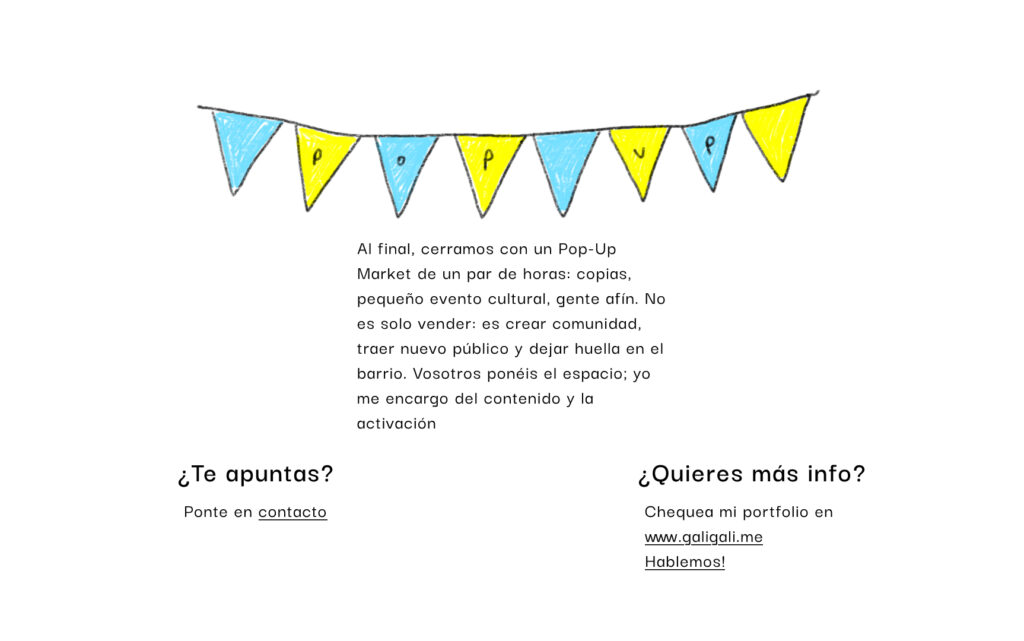 Como mi comunicación es sobre todo visual, organicé las ideas este pitch deck de 4 pasos que comparto con aquellas tiendas a quienes contacto: